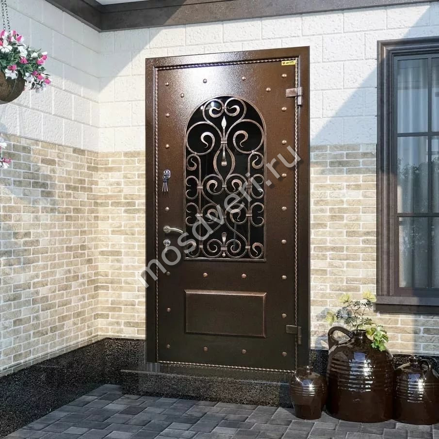 Входные двери со стеклом и ковкой